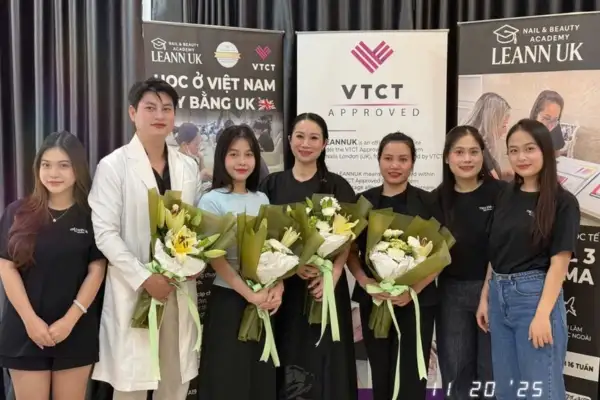 Chúng tôi đào tạo các chương trình quốc tế như VTCT Level 3 Nail Technology Diploma, các khóa ngắn hạn về Nail & Beauty cơ bản, và những workshop chuyên sâu như Builder Gel, Nail Design, Dipping Powder.